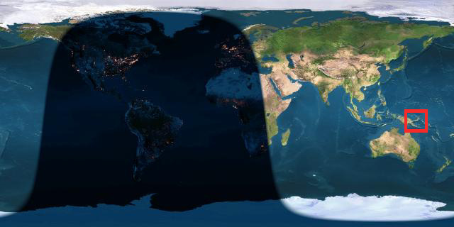 So, where is PNG located? The following pictures are taken from Earth View. The red squares mark where Papua New Guinea is located. Click on the images for full size versions. |