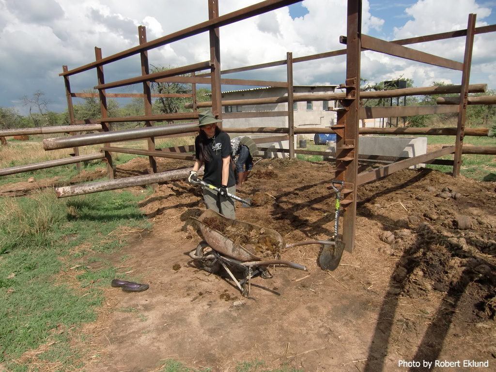 Top row: Cleaning the elephant bomas. Bottom row: Elephant training and herding. |