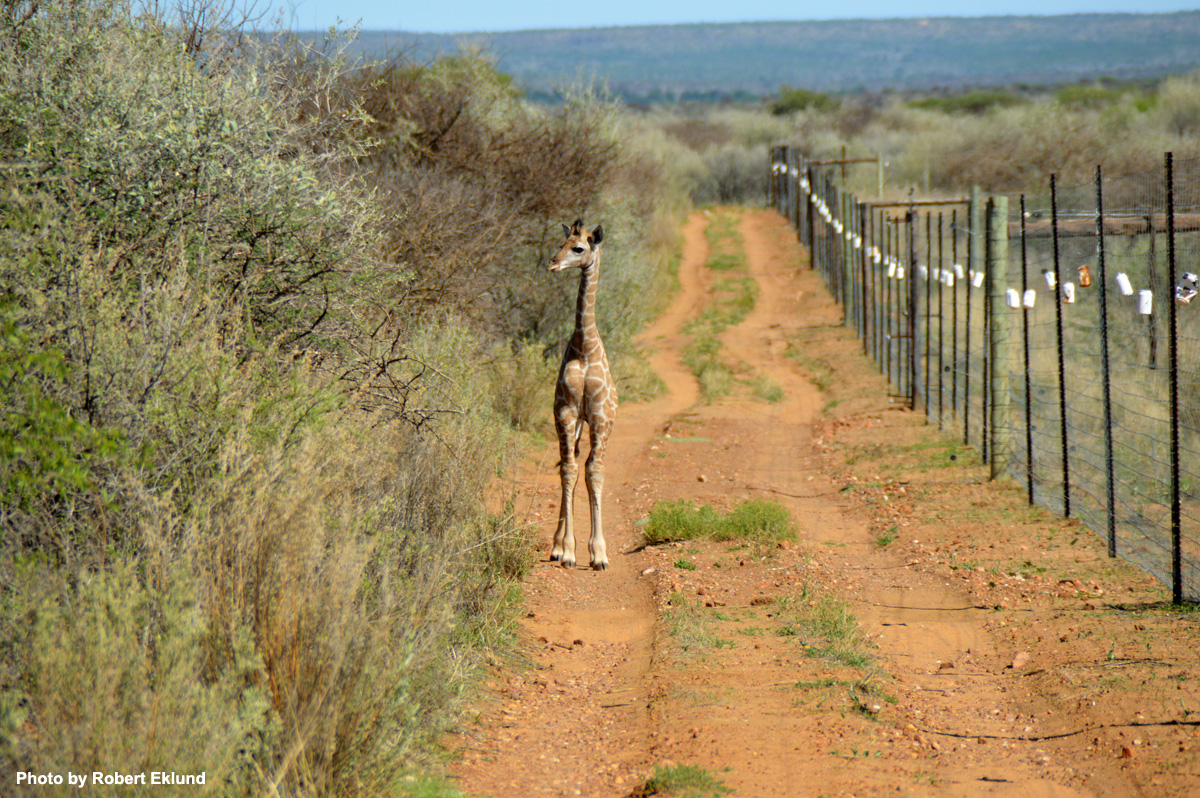 Bumping into a giraffe calf out for a stroll by the cheetah enclosures. |