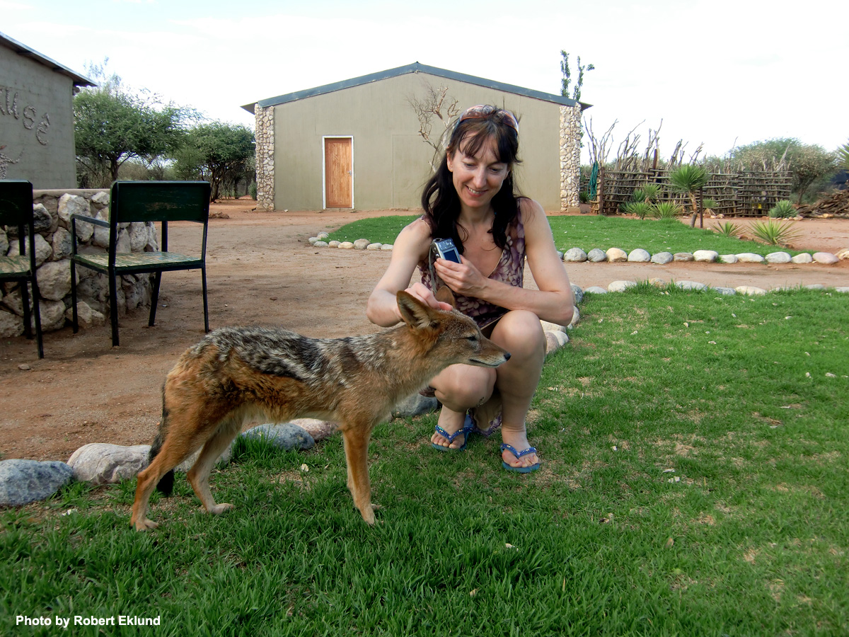 Miriam Oldenburg with a more or less tame jackal. |