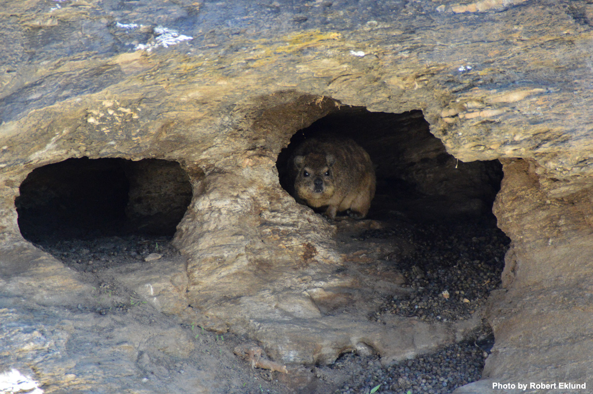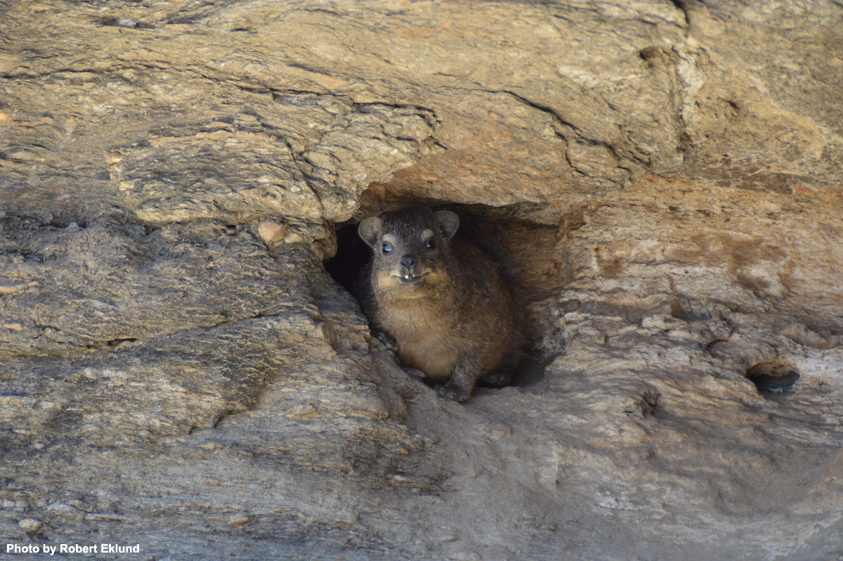 Rock hyraxes as seen from the lodge. |