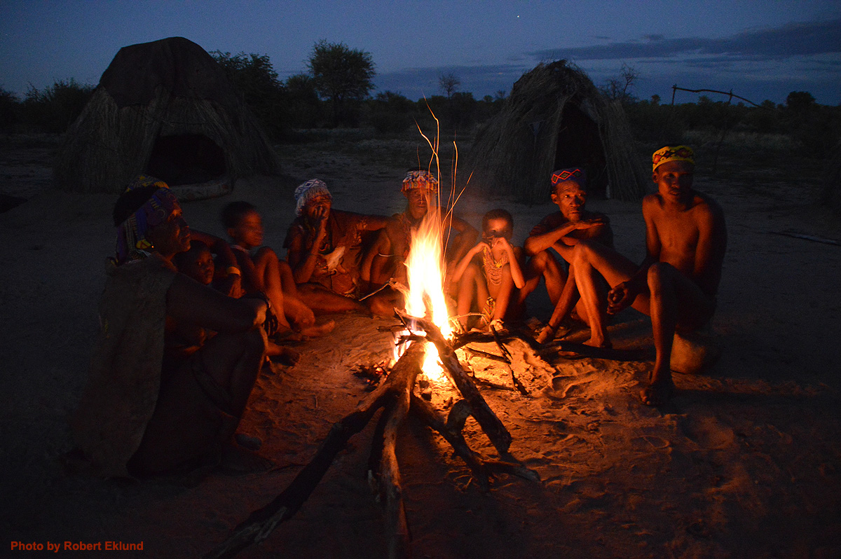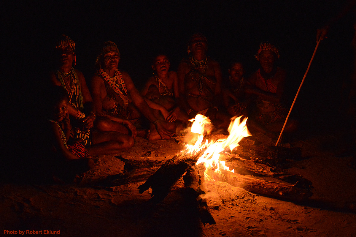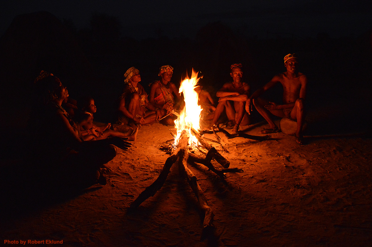 Dusk in San village. Stories, singing and dancing. |